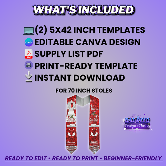 Red Editable Memorial Stole Design & Supply List (CanvaPro)