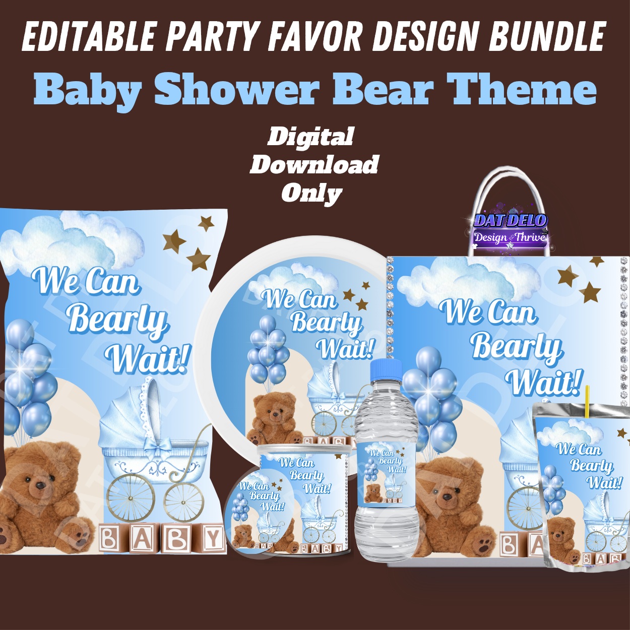 Elevate your baby shower with my Editable Bear Themed Party Favor Designs!