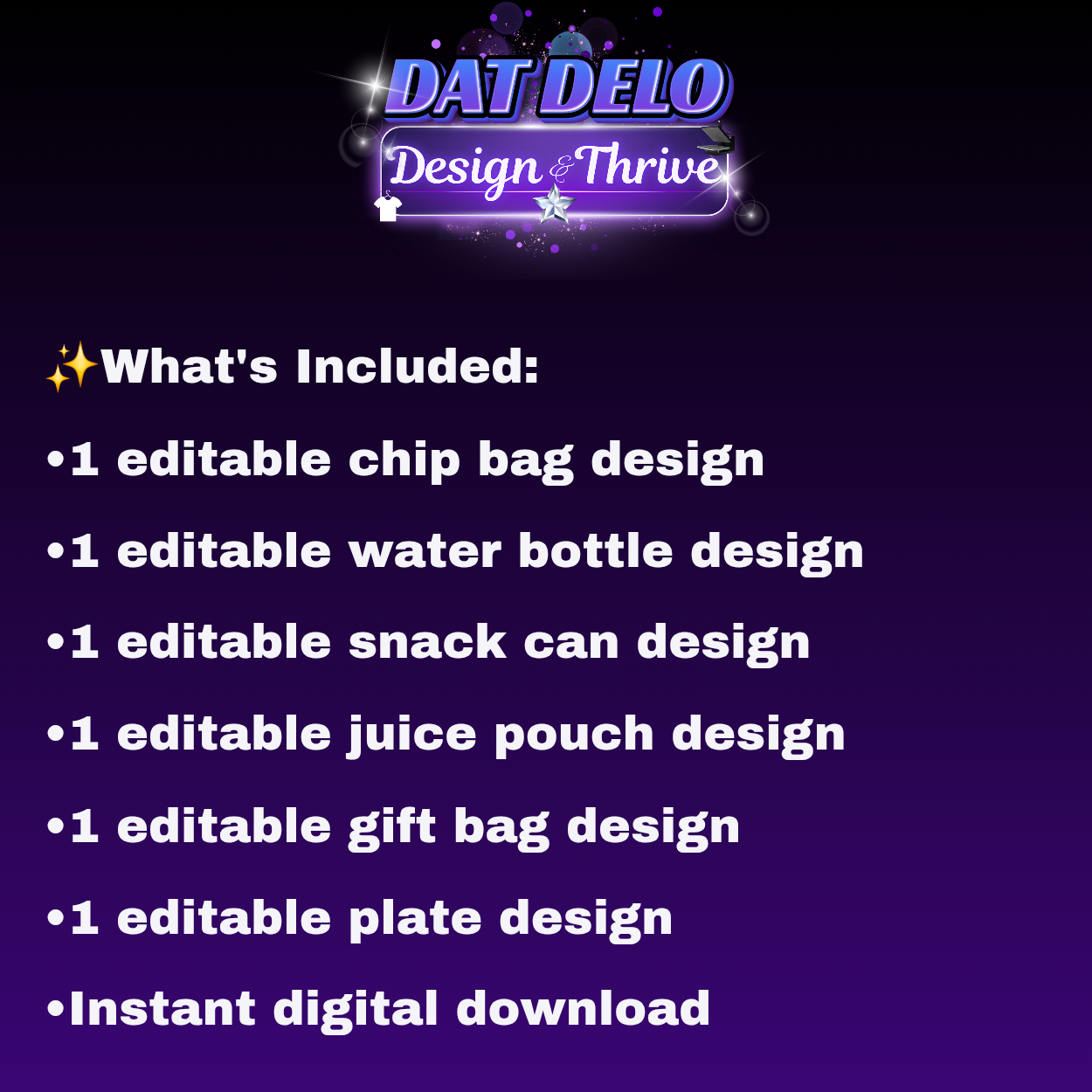 All elements can be edited in Canva! Please note, this is not a size template, so be sure to measure your party favors before printing.