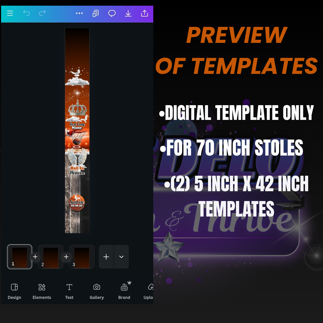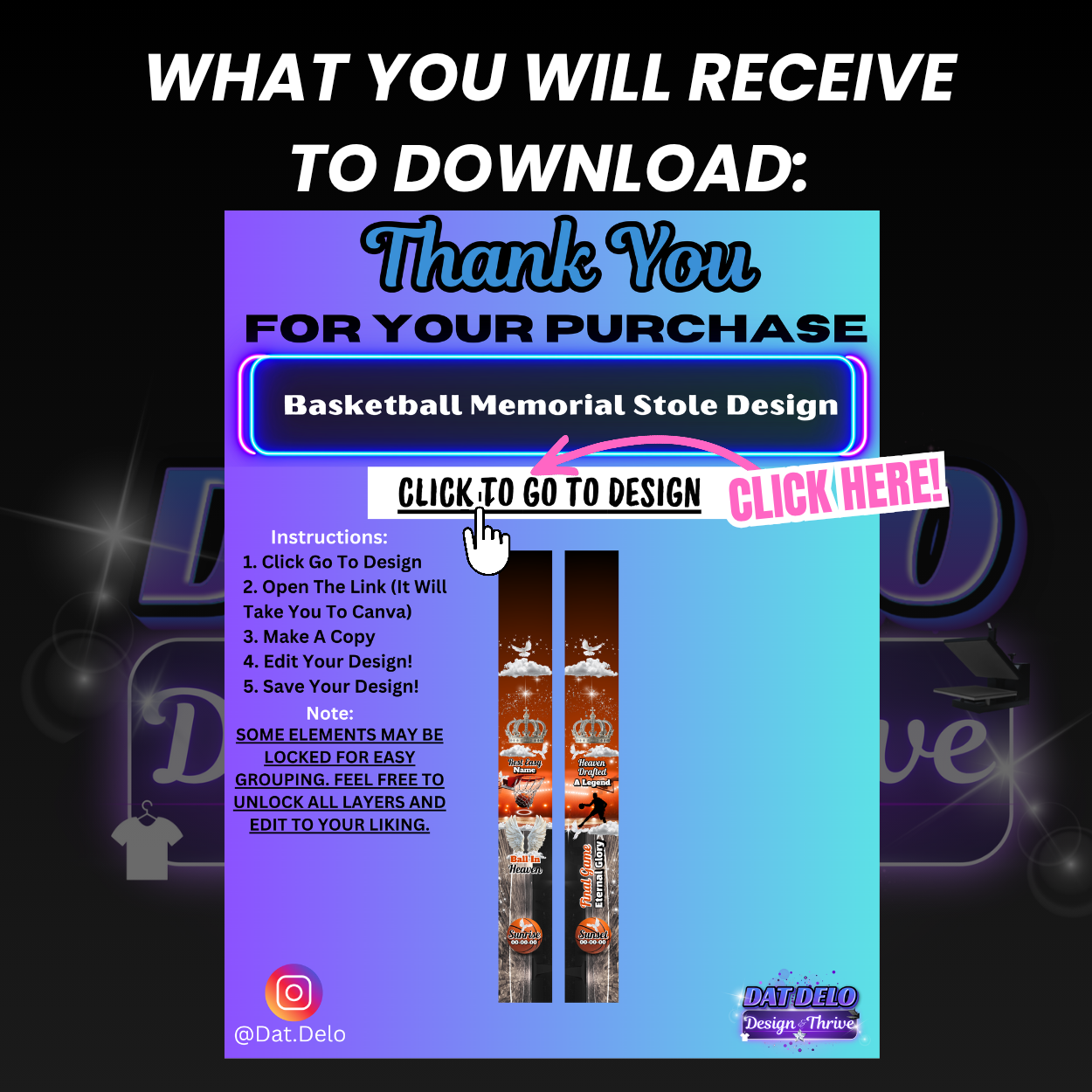 Editable Basketball Memorial Stole Design & Supply List (CanvaPro)