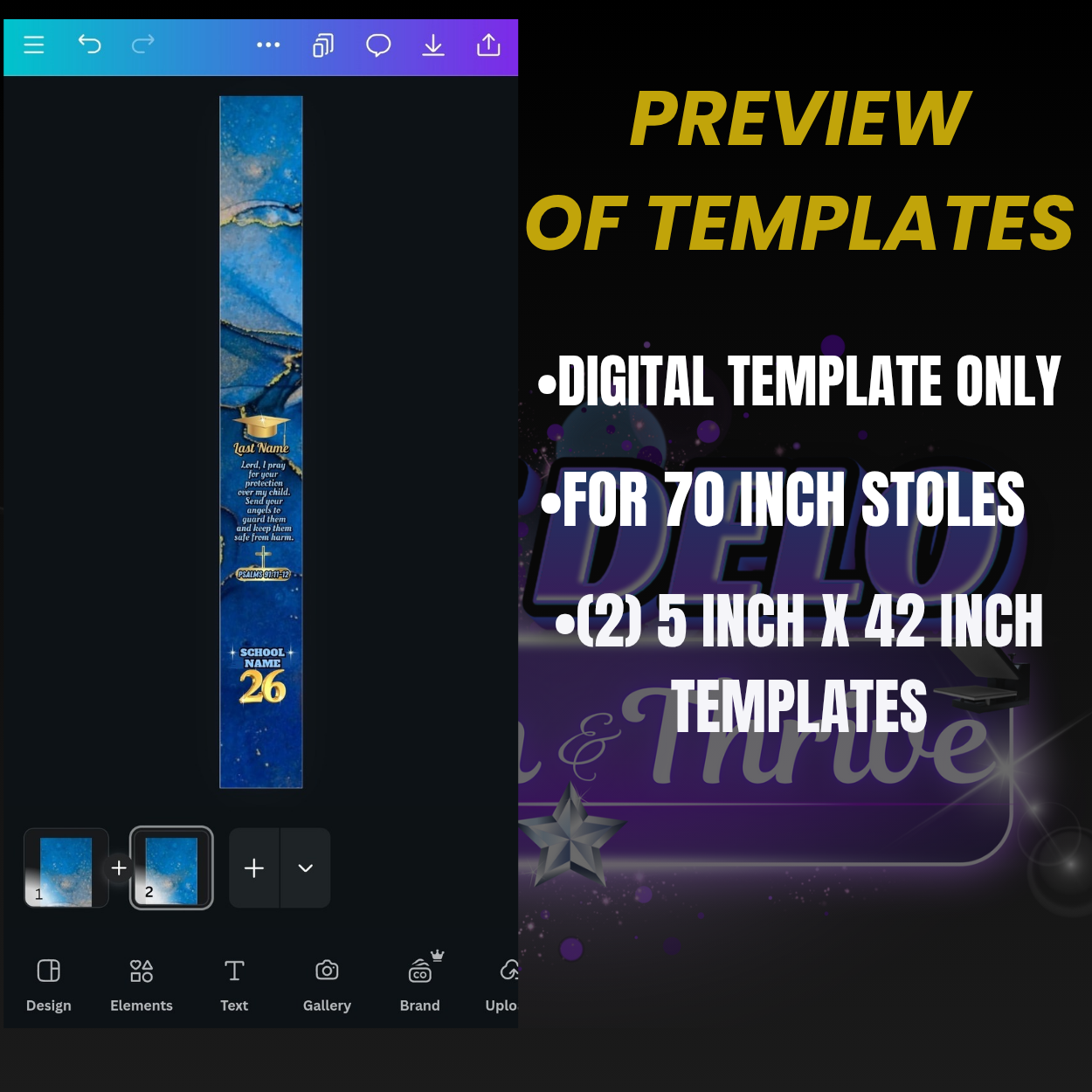 •Canva-editable stole layout (resizable for other stole sizes)