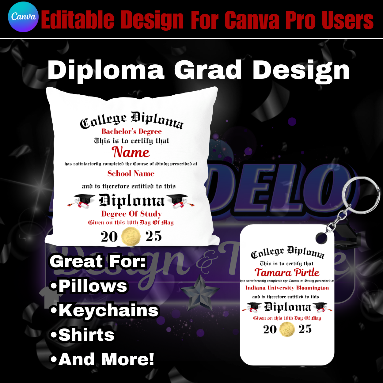 Elevate your graduation style with my Editable Grad Diploma Design! Get ready to stand out with this customizable canva design. This works great for pillows, keychains, shirts, and more!