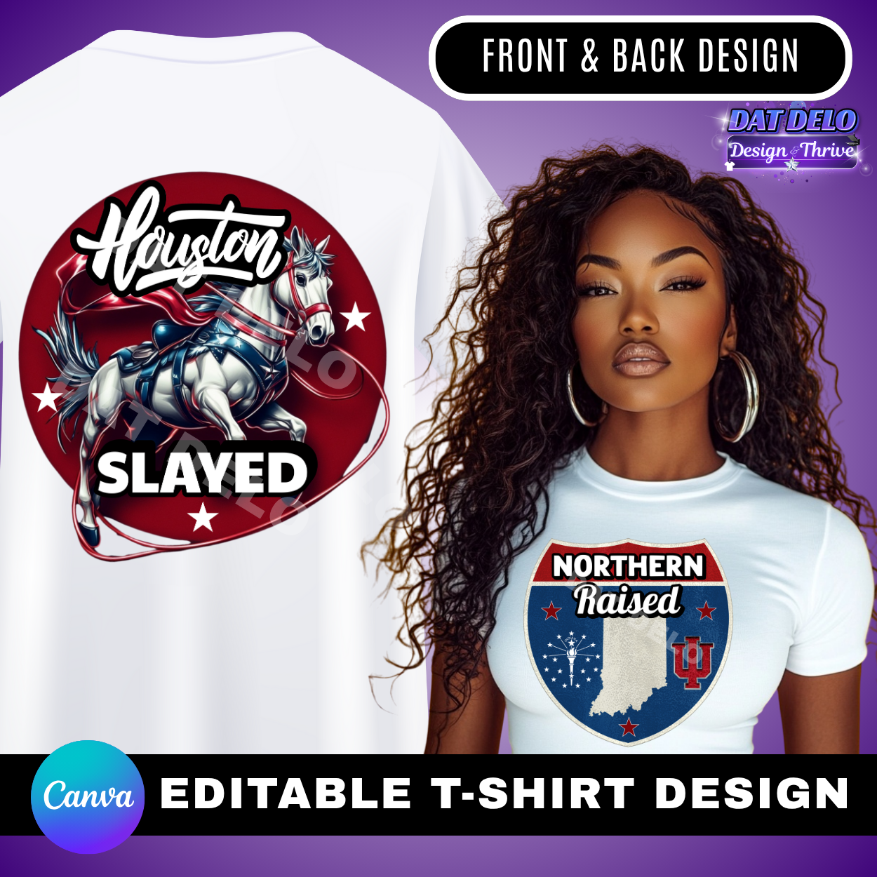 Editable Houston Slayed Shirt Design Front and Back Design & Mockup (CanvaPro)