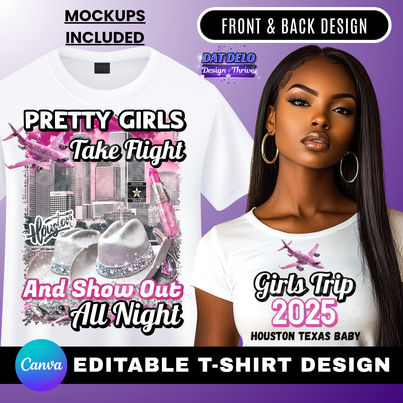 Editable Pink Girls Trip Shirt Design & Mockup (Canva Pro)