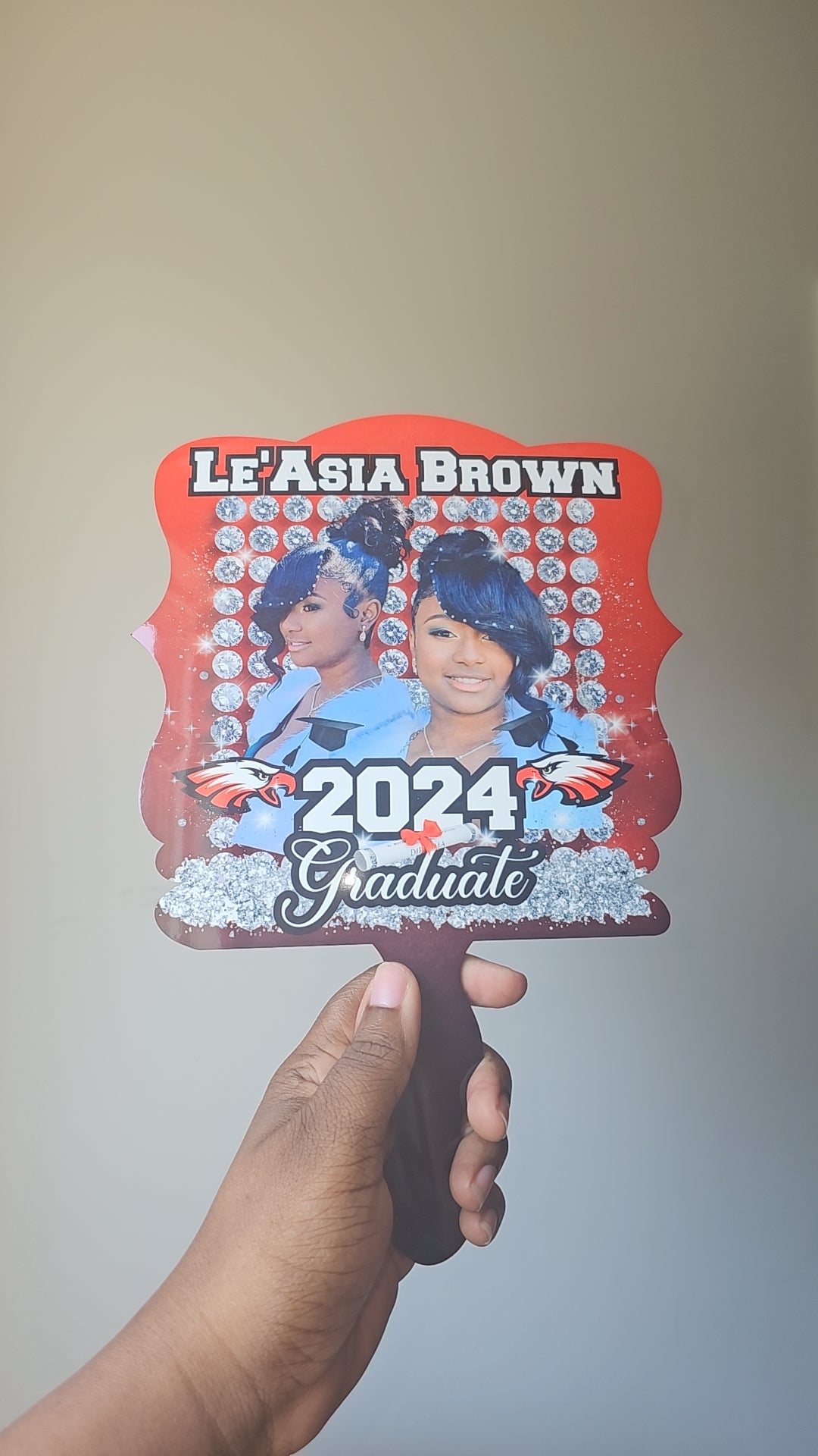 This unique fan is the perfect way to showcase your achievements and hard work! Stand out from the crowd and feel proud as you cheer for your graduate. This is a keepsake you'll cherish for years to come!