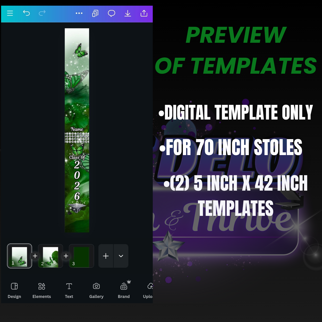 Create a beautiful graduation stole instantly with this editable Canva template. Featuring a green butterfly theme, it’s perfect for graduations and keepsakes