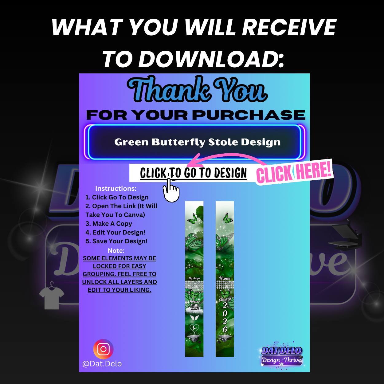 Green Butterfly Editable Grad Stole Design(Includes Supply List & Mockups!)