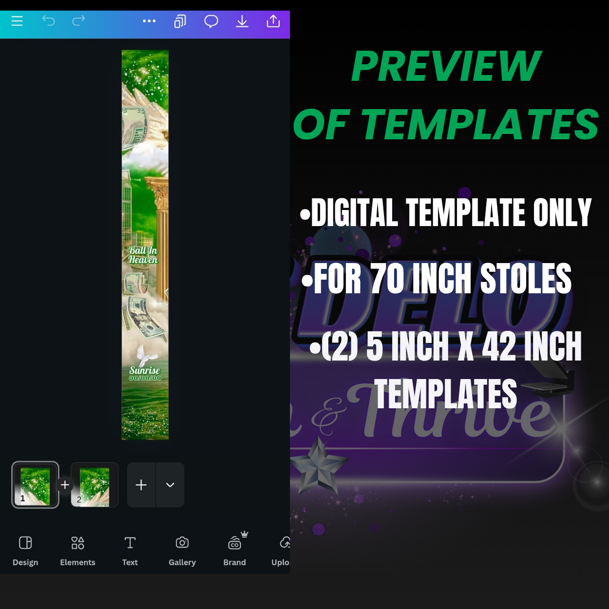 •(2) 5 inch x 42 inch Canva editable stole templates (for left and right side of stole)