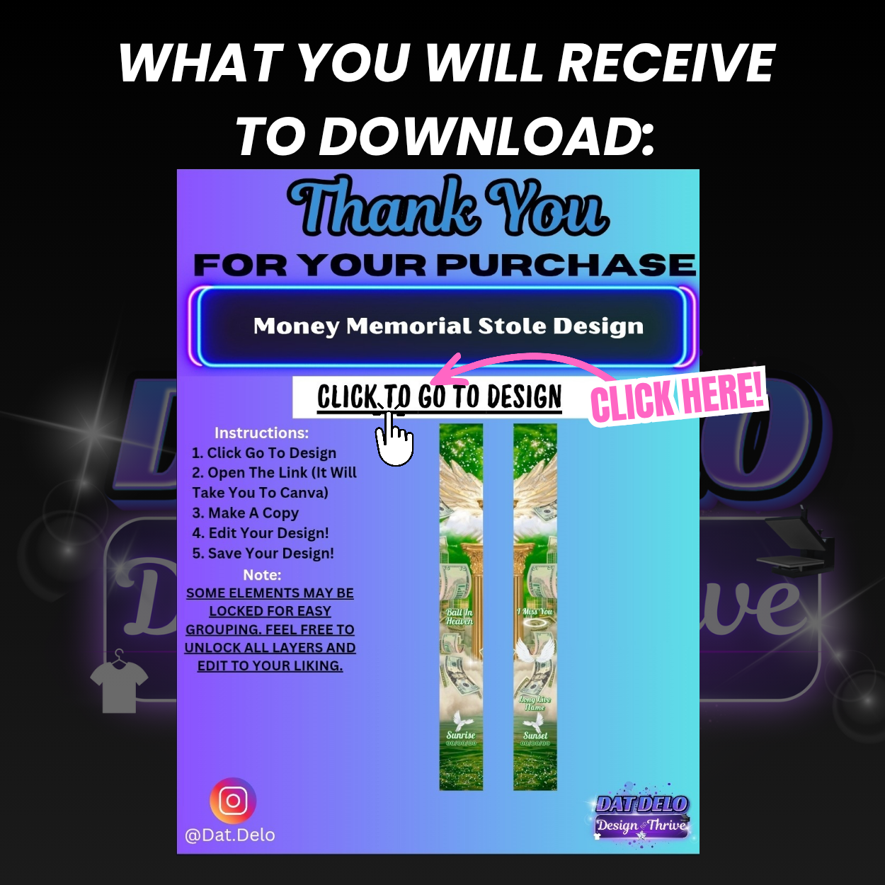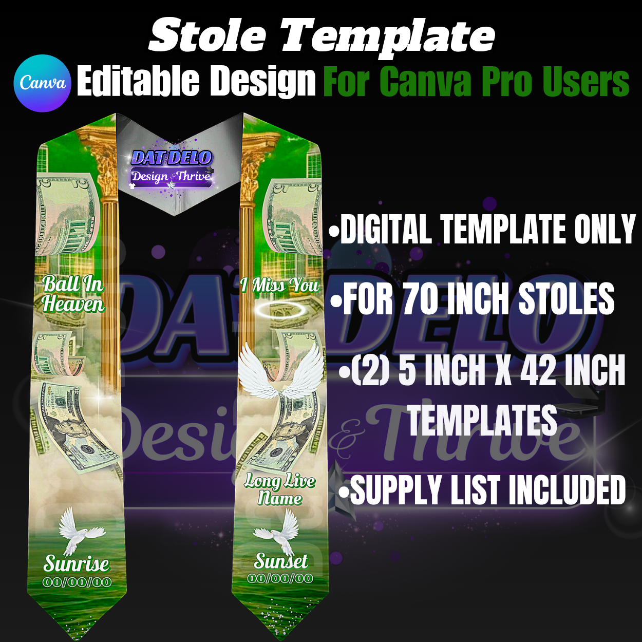 Money Green Editable Memorial Stole Design & Supply List (CanvaPro)