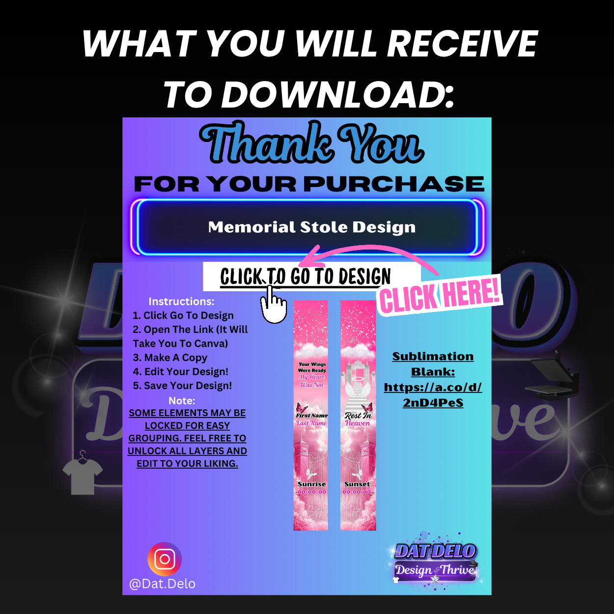 Pink Editable Memorial Stole Design & Supply List (CanvaPro)